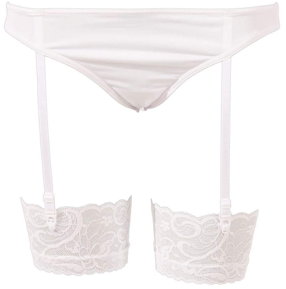 Kurze Bluse zum Knoten, Falten-Minirock mit aufregendem Po-Ausschnitt, woraus der Rüschenslip mit angenähten, verstellbaren Strapsen hervorblitzt. Hinten Reißverschluss. Passend dazu eine strenge Krawatte und Strümpfe.