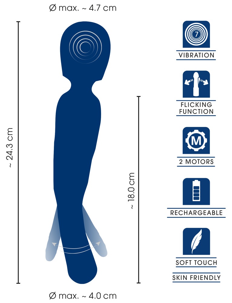 Gesamtlänge 24,3 cm, Massagekopf-Ø 4,7 cm.