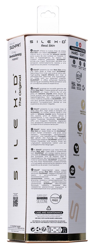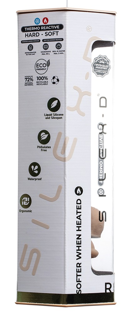 Der seidige Silikon-Dildo hat einen festen, dennoch flexiblen Kern aus patentiertem Silexpan und lässt sich dauerhaft in Wunschform biegen (Memory-Effekt). Außerdem reagiert das Silexpan auf Wärme (wird dann weicher) und Kälte (wird härter).
