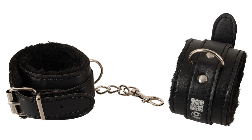 Die Handfesseln aus stilvollem Lederimitat lassen sich mit ihren Schnallenverschlüssen schnell anlegen und passend verstellen. Weich gepolstert für besten Tragekomfort. Aus PVC und Metall.
