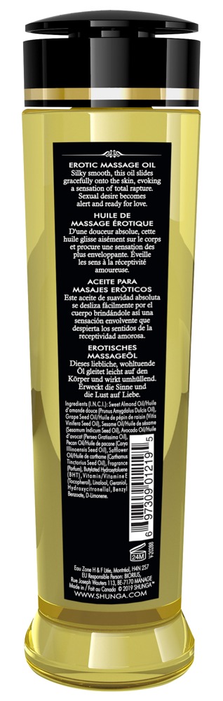 Luxuriöses Erotic Massage Oil Seduction von Shunga mit sinnlich elegantem Midnight Flower-Duft, der bei der Solo- oder Partnermassage die Sinne weckt und Lust auf mehr macht! Das vegane Massageöl besteht aus 100% kaltgepressten natürlichen Ölen und enthält hautpflegendes Vitamin E. Es gleitet sanft und leicht über die Haut, ohne ein unangenehm fettiges Gefühl und Rückstände zu hinterlassen. Im Gegenteil, es pflegt die Haut seidig weich! Dazu ist sehr ergiebig für viele sinnliche und leidenschaftliche Ganzkörpermassagen.