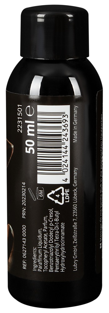 Hochwertiges Erotik-Massage-Öl made in Germany! Wertvolle Inhaltsstoffe pflegen die Haut zart und samtweich für lange Massage-Lust. Dazu beflügelt der aphrodisierende und stimmungsaufhellende Vanilleduft verborgene (erotische) Fantasien... Wasserlöslich, abwaschbar.