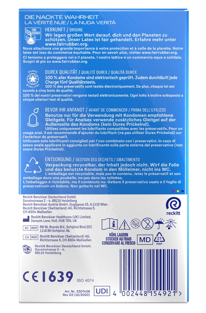 Transparentes, anatomisch geformtes Kondom mit Easy-on Passform für perfekten Sitz und leichteres Abrollen. Das spezielle Herstellungsverfahren verleiht außerdem einen angenehmen Duft. Extrafeucht mit Reservoir. Dermatologisch getestet.