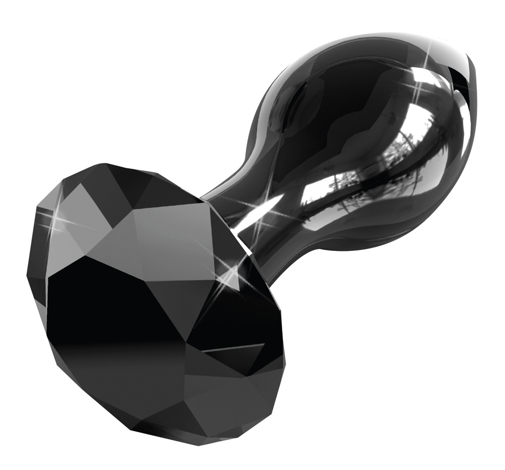 Konisch geformter schwarzer Analplug aus mundgeblasenem Glas mit Stopper in Form eines Schmucksteins in Diamantoptik. Geruchsneutral, antiallergen und sehr hygienisch, da einfach zu reinigen, sogar in der Spülmaschine. Tipp: Im Wasserbad erwärmt oder im Kühlschrank abgekühlt kann er das Lustgefühl noch zusätzlich steigern. Bei guter Pflege hält der Artikel lebenslang.