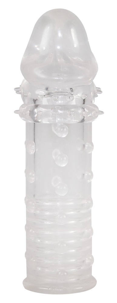 Die transparente Penishülle mit fester Eichel reizt SIE und IHN durch die Reizrillen innen und die Reiznoppenstruktur außen. Einem lustvollen Sexvergnügen steht nichts mehr im Wege… Gesamtlänge ca. 16 cm. Einführtiefe ca. 11,5 cm. Außen-Ø 2,5 bis 4 cm. Innen-Ø 2,5 cm. Ø leicht dehnbar. Material: TPE.