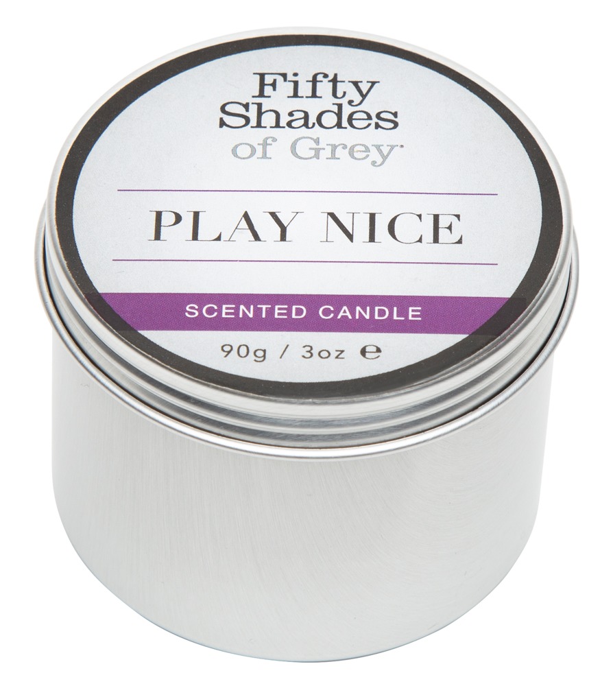 Luxuriöse Massagekerze Play Nice Vanilla Candle von Fifty Shades of Grey mit sinnlichem Vanilleduft, der sich beim Anzünden der Kerze wohlig im Raum ausbreitet. Das Sojawachs der Kerze schmilzt zu einem angenehm warmen pflegenden Massagebalsam, das direkt auf die Haut aufgetragen werden kann. Im Metalldose mit Deckel. 90 g.