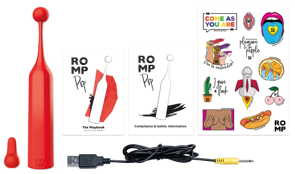 Minivibrator Pop von ROMP mit 2 verschiedenen Aufsätzen zur zielgenauen Stimulation aller äußeren Lustpunkte insbesondere der Klitoris. Handlich leicht und einfach zu bedienen, lässt er sich in jedes Solo- und Paarspiel sinnlich miteinbeziehen. Und kann dank seiner Wasserdichtigkeit auch mit ins Bad oder unter die Dusche genommen werden.