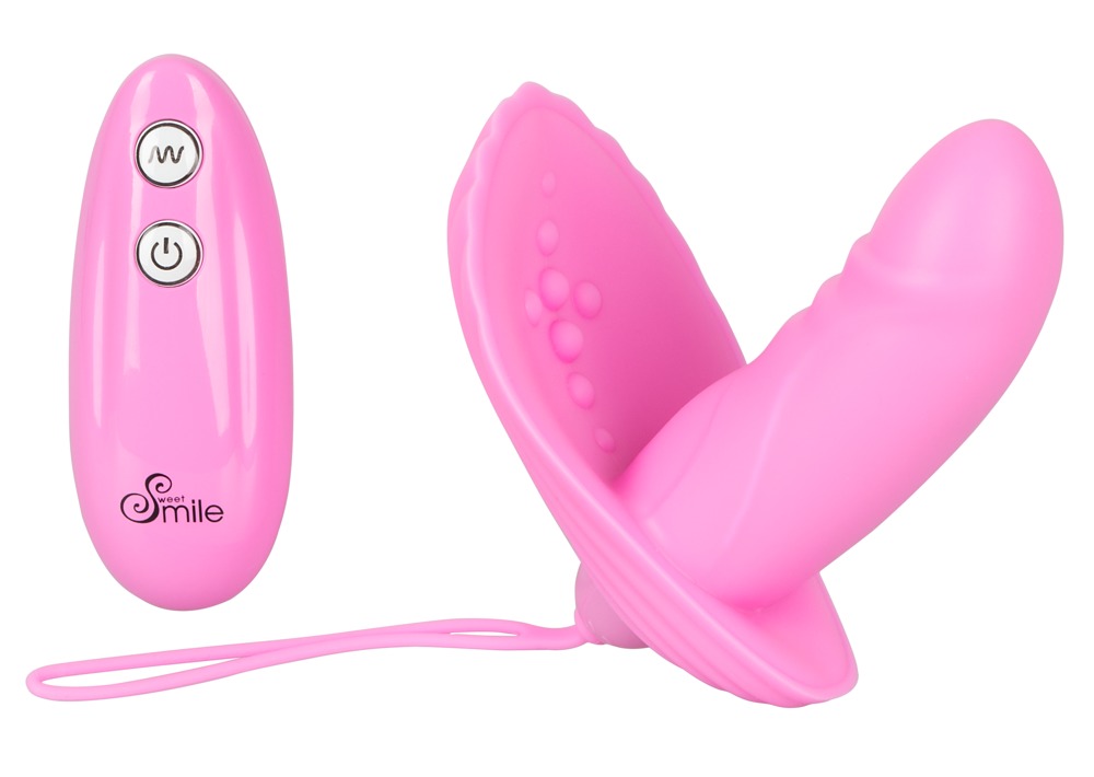 Anatomisch perfekt designter RC Panty Vibrator von Sweet Smile mit Vibro-Penis und Klitoris-Reiznoppen in einer anschmiegsamen Silikon-Muschel. 7 Vibrationsmodi sind mit der praktischen Fernbedienung bequem per Knopfdruck steuerbar – auch vom Partner. Die flüsterleisen, dennoch kraftvollen Vibrationen verwöhnen jederzeit und überall – völlig diskret, ohne dass jemand etwas bemerkt! Das Vibrobullet mit elastischem Band ist aus dem Vibro-Penis herausnehmbar und auch solo nutzbar.