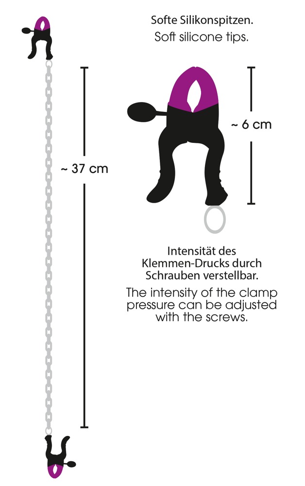 Wie wäre es dann mit dieser schönen Kette?! Und das Beste: Sie kommt nicht allein, sondern zusammen mit zwei verstellbaren Nippelklemmen an den Enden. Silberfarben/Schwarz/Lila.