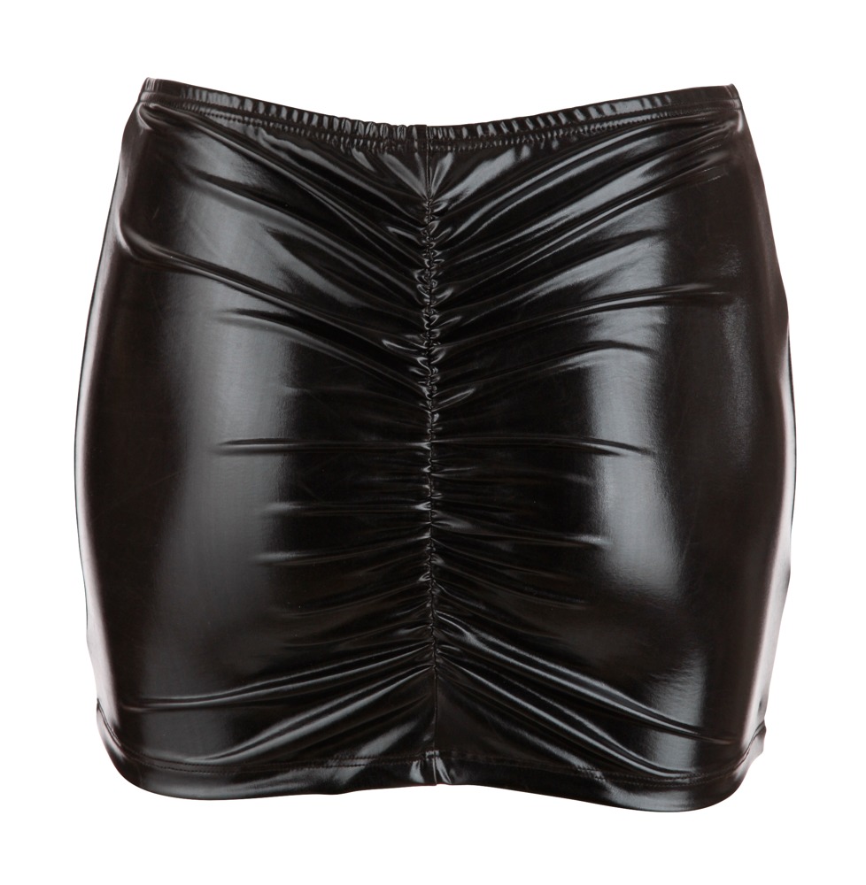 Dieser Minirock von Cottelli Party im angesagten schwarzen Wetlook bringt den Po dank der rückseitigen Raffung perfekt zur Geltung. Ein sexy Basic-Rock für viele Looks.