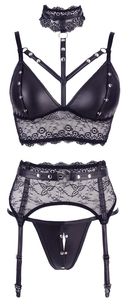 - 3-teiliges Set aus Spitze mit Mattlook & Nieten