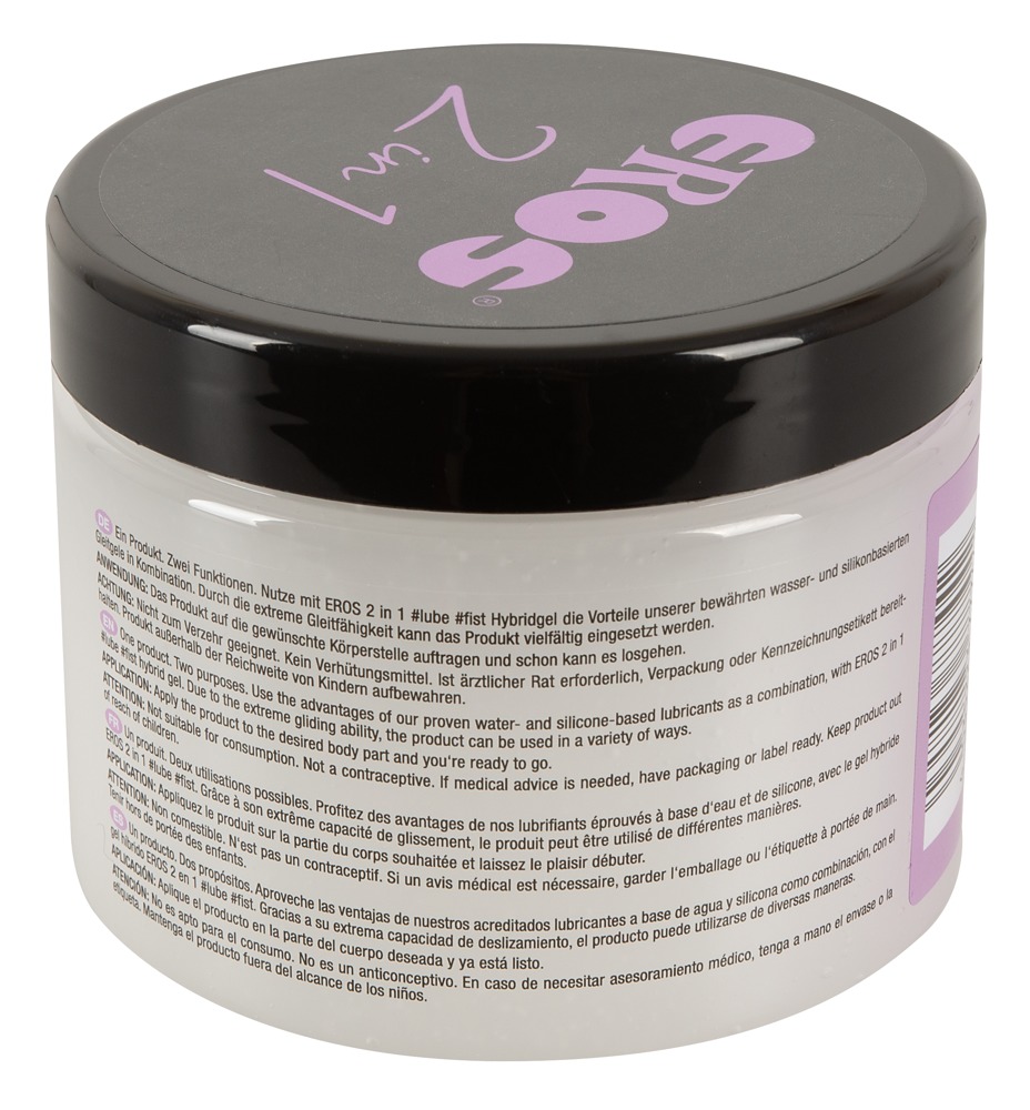 Hybridgleitgel 2in1 lube & fist von EROS auf Wasser- und Silikonbasis für die Anwendung beim Sex, speziell Fist- und XXL-Toyplay. Sorgt für perfekte Geschmeidigkeit und lang anhaltende Gleitfähigkeit. Latexkondomsicher. Geruchs- und geschmacksneutral. Im Tiegel – extrem ergiebig.