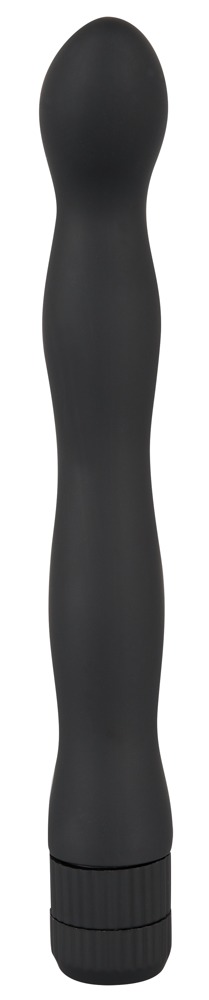 Gewellter Anal-Vibrator mit runder Spitze und stufenlos regelbarer Vibration. Schwarz. Ca. 18 cm lang, Ø 1,7-2,4 cm. Material: ABS. (Batterien bitte extra bestellen: 2 x Micro/AAA)