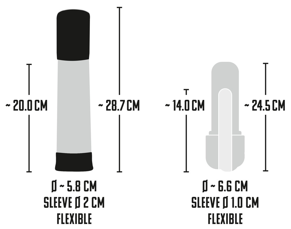 Sleeve: Einführtiefe 14 cm, Innen-Ø 1 cm, dehnbar.
