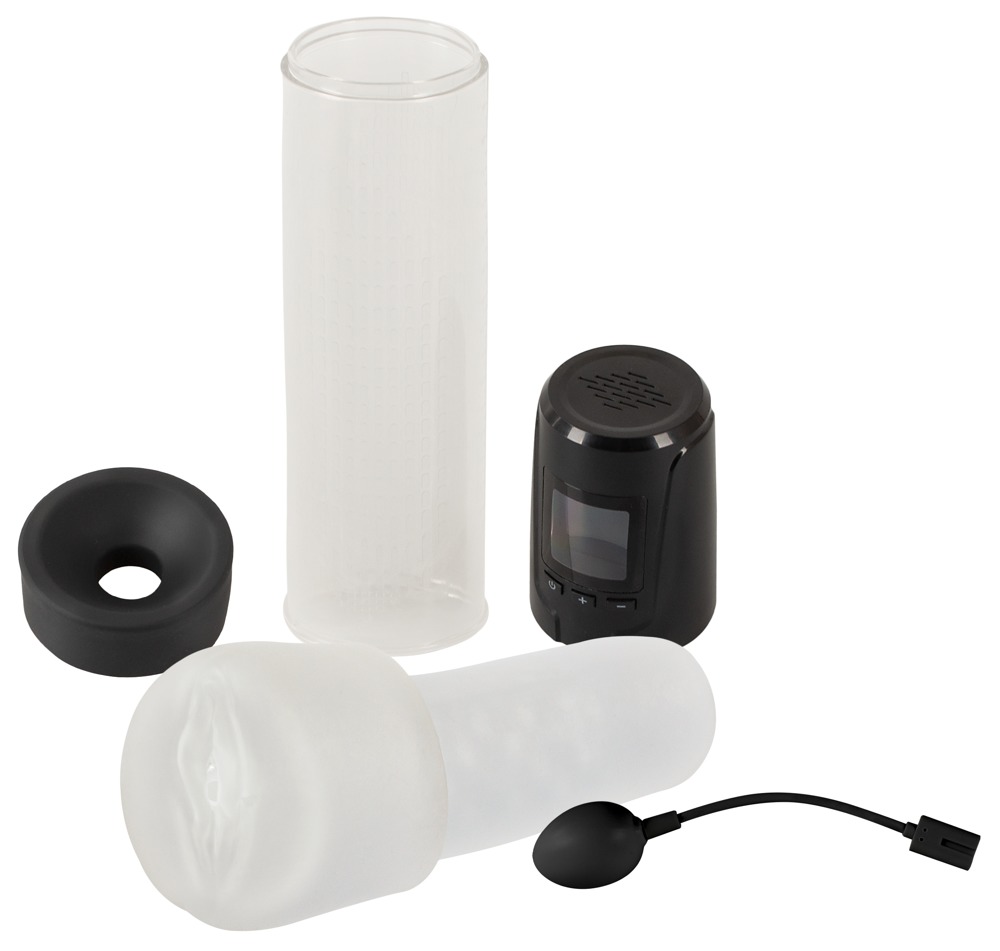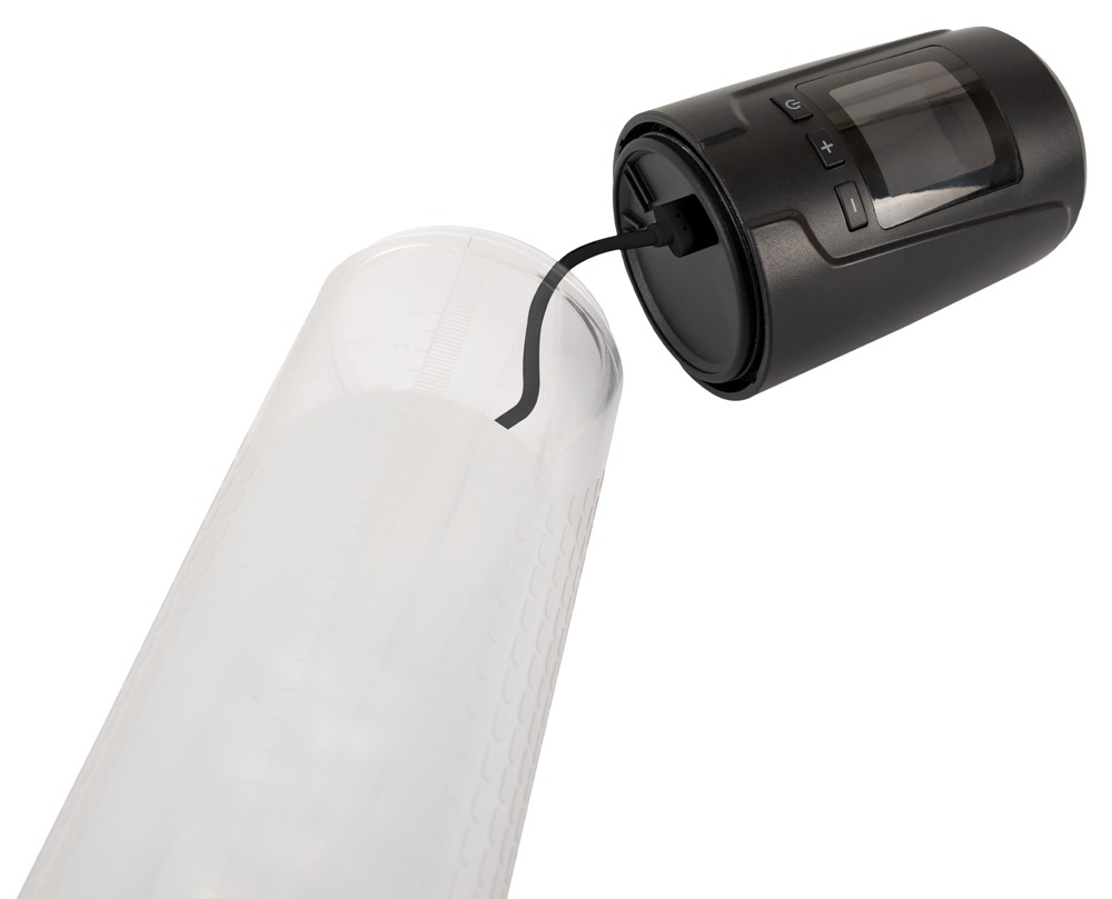 Im transparenten Zylinder mit Messskala wird schnell und bequem der saugende Unterdruck erzeugt, der den Penis auf Höchstmaß und -form anschwellen lässt. Am LED-Display ist der Unterduck bzw. Saugmodus bis 55 kPa sowie der Akku-Ladestand perfekt kontrollierbar. Für den zusätzlichen Vibro-Vagina-Spaß wird einfach das Vibrobullet und die Sleeve in den Zylinder eingesetzt. Die dehnbare seidige Soft-Sleeve in Vagina-Optik ist innen mit unzähligen weichen Stimulationsnoppen ausgestattet für eine sehr realistische Penismassage.