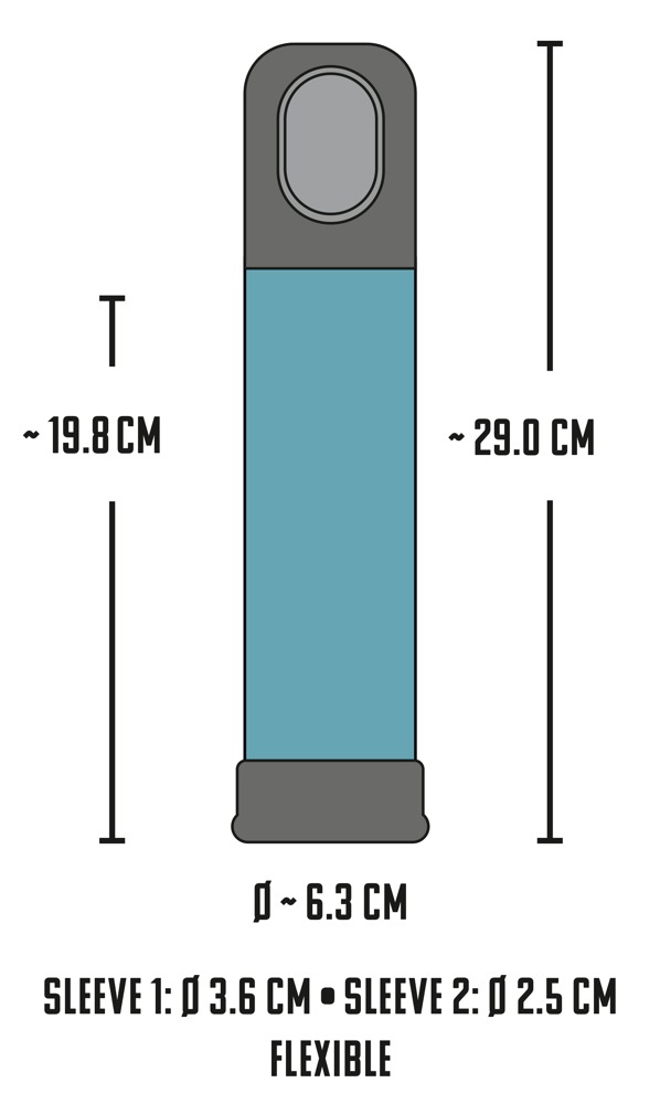 Im transparenten Zylinder mit Messskala (cm und Inch) wird schnell und bequem der saugende Unterdruck erzeugt. Der Penis kann auf Höchstmaß und -form anschwellen. Am LED-Display sind die Saugmodi sowie der Akku-Ladestand kontrollierbar. Inklusive sind 2 seidig softe Silikon-Manschetten mit verschiedenen Durchmessern für eine perfekte Abdichtung des Zylinders zum Körper.