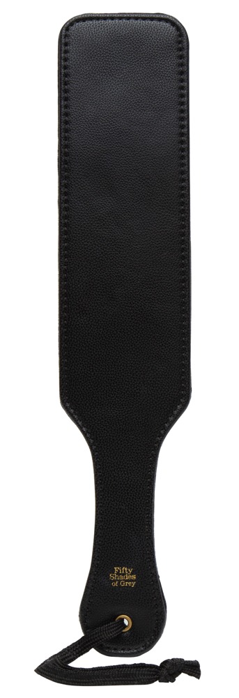Hochwertiges elegantes Schlagpaddel Bound to You Paddle von Fifty Shades of Grey mit unterschiedlichen Schlagseiten für vielseitige Empfindungen von zart bis hart: Eine Seite seidig softer Velours (zum Streicheln), andere Seite stilvolles glattes Lederimitat (zum Schlagen). Mit Hand-/Aufhängeschlaufe.