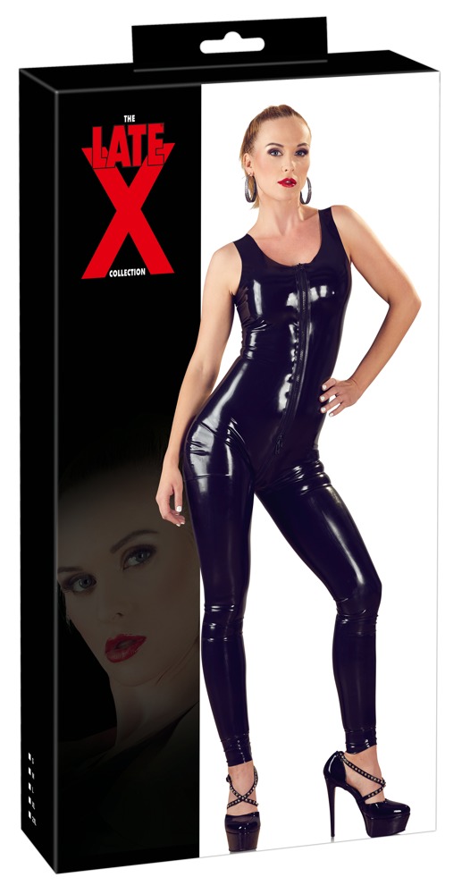 Ärmelloser Catsuit aus Naturlatex ohne Fuß. Mit 3-Wege-Reißverschluss vom Dekolleté durch den Schritt bis über den Po - perfekt fürs spontane Freilegen und bequemes An- und Ausziehen. Gefertigt mit einer Latexstärke von 0,4 mm schmiegt sich dieser Einteiler hautnah an, formt die Figur und macht jede Bewegung bereitwillig mit.