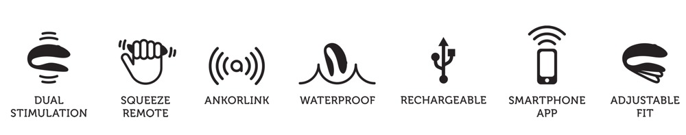 10 abwechslungsreiche Vibrationsmodi sind mit der Fernbedienung bequem steuerbar. Dank Squeeze-Funktion reagiert die Fernbedienung intuitiv auf Druck – je fester man drückt, desto stärker die Vibration. Der Chorus selbst verfügt über berührungsempfindliche Sensoren (Touch Sense), die während des Liebesspiels die Vibrationen über Körper- bzw. Fingerbewegungen anpasst. Mit der kostenlosen We-Vibe-App auf dem Smartphone sind noch mehr Vibrationsmodi, Synchronisation zu Musik und zusätzliche 3 Touch Sense Modi möglich. Ebenso kann man sich mit We-Vibe-Partnertoys verbinden und auch den Chorus über große Distanzen vom Partner fernsteuern lassen. Spaß ist überall ist möglich, denn der Chorus ist wasserdicht.
