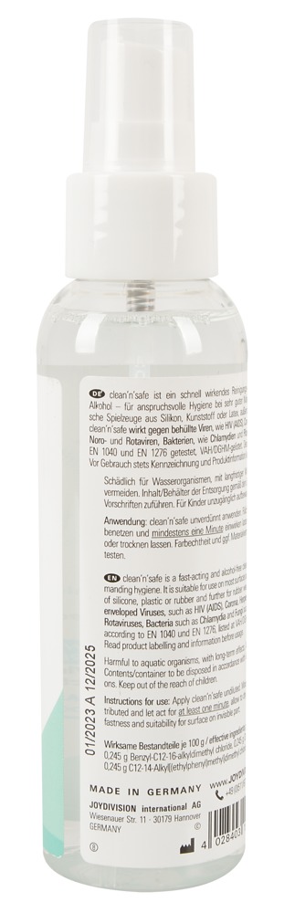 Universeller Toycleaner für Erotikspielzeug aller Art. Anwendbar auf Materialien aus Gummi und Latex, Silikon, PVC sowie Plastik. Alkoholfrei, eiweißlösend. Parfümfrei. Dermatologisch getestet. 100 ml.