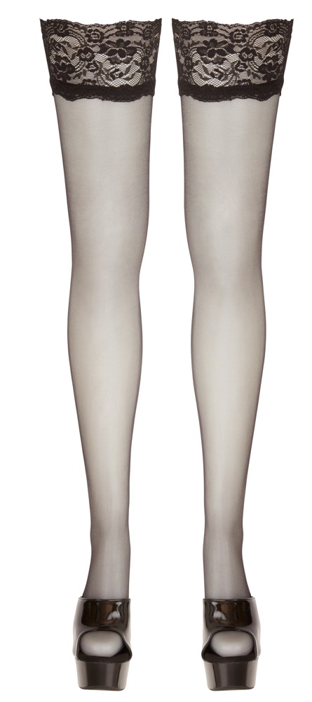 Halterlose Strümpfe von Cottelli LEGWEAR mit 11 cm breitem Spitzenabschluss. Innen mit Silikonbändern für einen rutschfesten Sitz. Ein absoluter Bestseller für schöne Beine, der sich vielfältig kombinieren lässt. 20 den. Oekotex-zertifiziert.