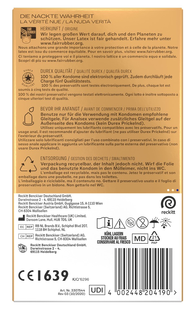 Transparente, ultra dünne Kondome Hautnah Extra Groß XXL von Durex für intensive natürliche Empfindungen. In großer Passform (nominale Breite 60 mm) für mehr Komfort. Mit Silikongleitgel befeuchtet. Die innovative anatomische Easy-on-Form bietet im Vergleich zu herkömmlichen zylindrischen Kondomen an den richtigen Stellen etwas mehr Platz – für leichteres Anlegen und Abrollen sowie komfortablen Sitz und pures Empfinden.