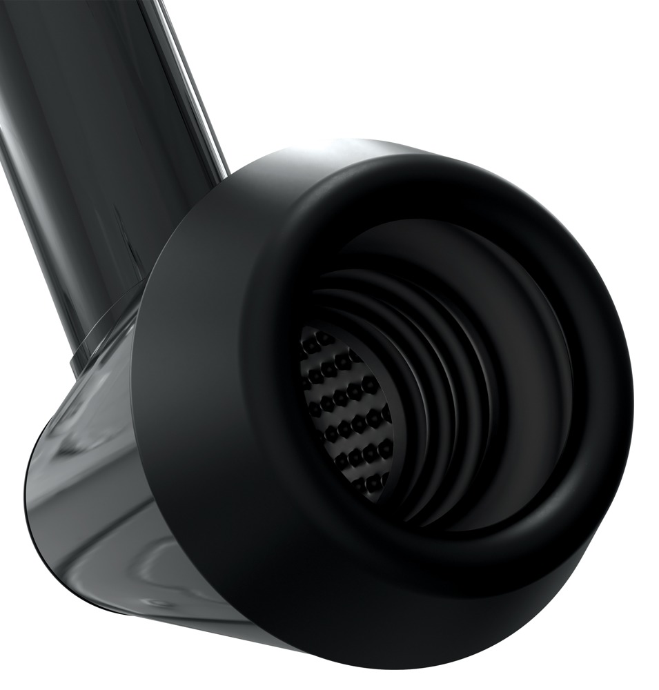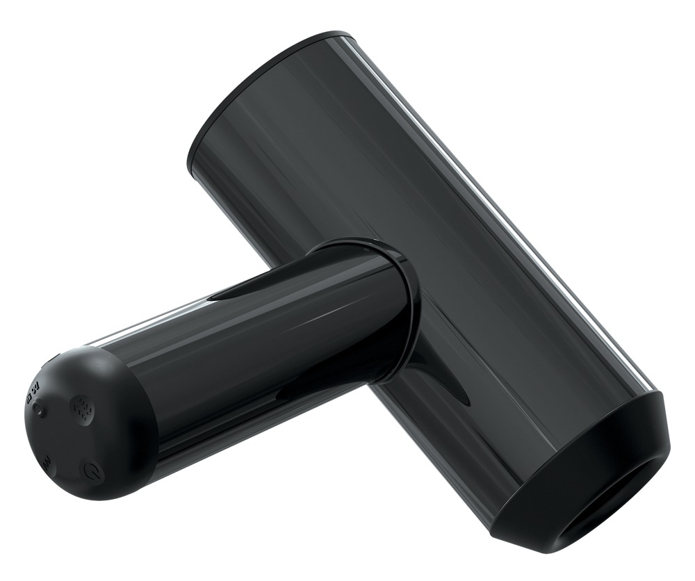 Schwarzer Masturbator, an beiden Seiten geöffnet und wasserdicht. Dadurch gut geeignet für Aktivitäten im Bad. Innenkanal mit Reiznoppen und Rillen, die sich in drei verschiedenen Stufen bewegen. Hinzu kommen 7 Vibrationsmodi. USB-Kabel zum Aufladen und drei verschieden große Penisringe enthalten.