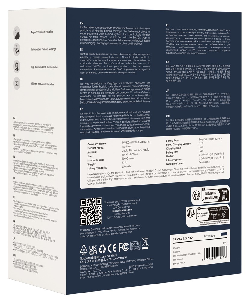 Der Interactive Pulsating Prostate Vibrator Iker Neo von SVAKOM stimuliert mit Vibrationen und Pulsationen intensiv die Prostata – und verwöhnt zugleich das Perineum mit einer Vibro-Massage. Ergonomisch geformt und angenehm flexibel passt sich der seidig softe Silikonvibrator dabei perfekt Körper und Bewegungen an für maximalen Tragekomfort. Die vielseitigen Vibrationen und P-Punkt-Pulsationen werden einfach direkt am Toy oder per App gesteuert. Für intensiven Anal-Spaß allein oder zu zweit – auch in Bad und Dusche, denn Iker Neo ist wasserdicht!