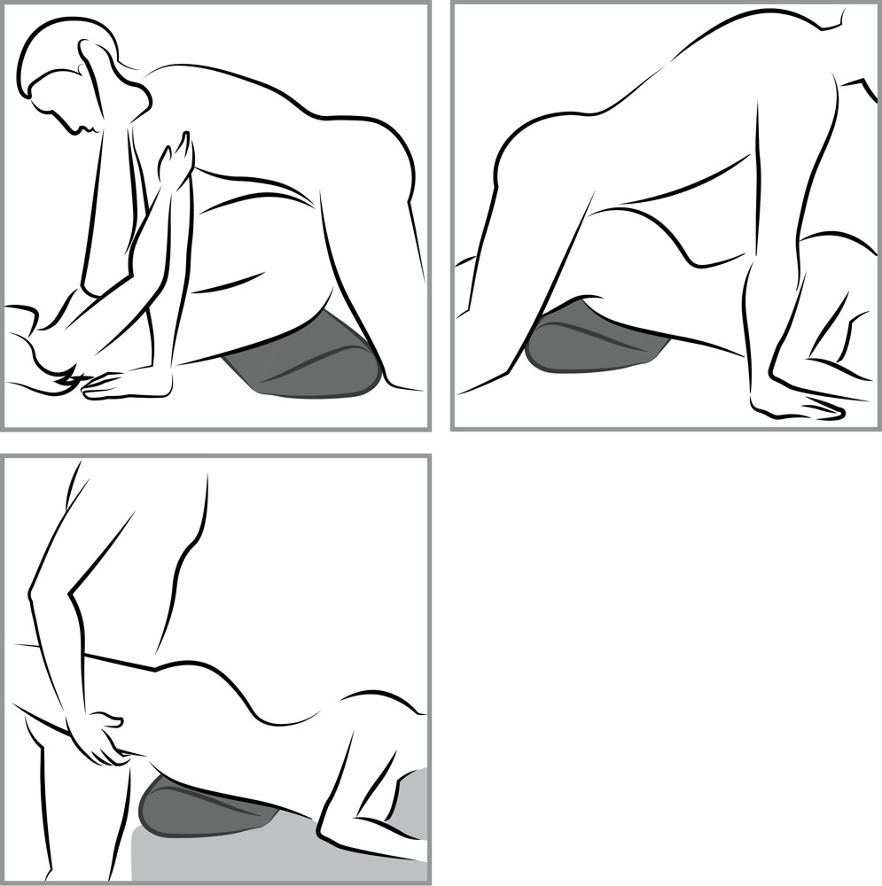 Keilförmiges, schwarzes abgerundetes Kissen.