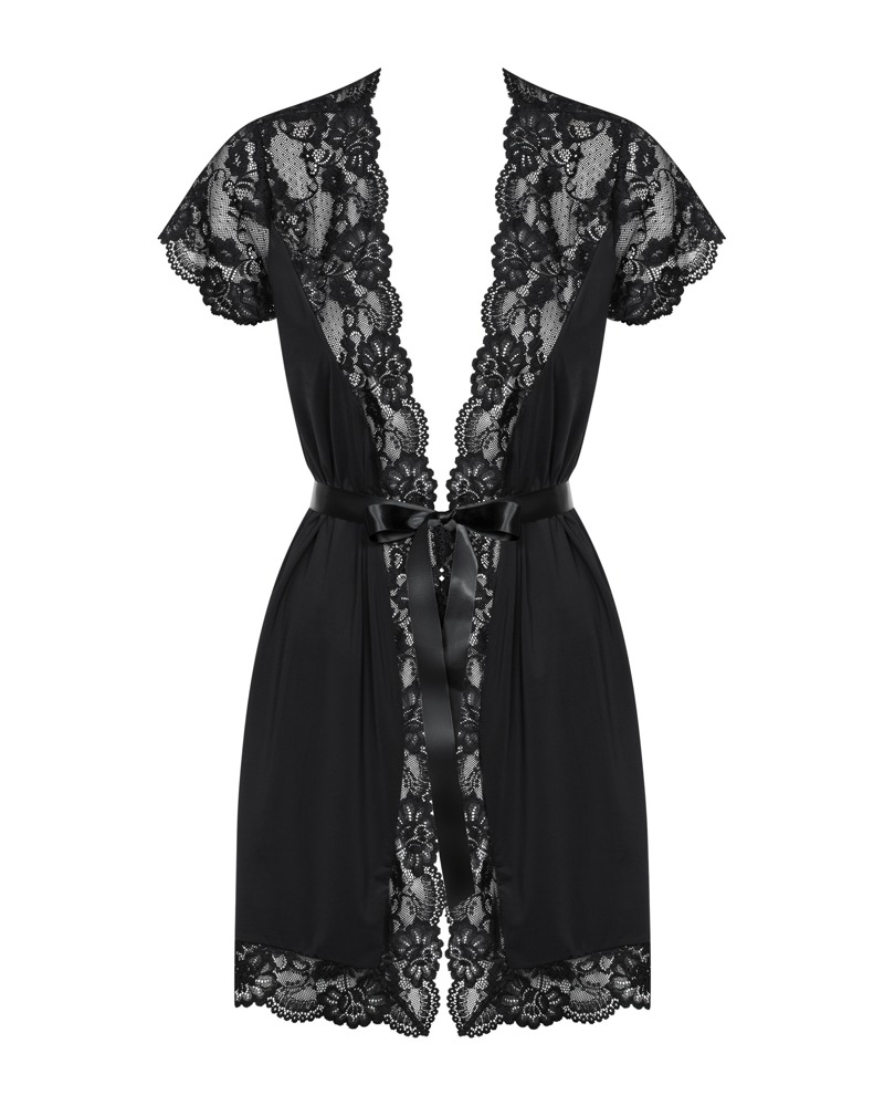 Der kurzärmelige Kimono 810-PEI-1 von Obsessive ist das Schmuckstück für den weiblichen Körper während oder nach einer leidenschaftlichen Nacht. Der glänzende Satin schmiegt sich an die Kurven und wird durch Schnitt und Bindeband zart akzentuiert. Die Spitzenabschlüsse an den Säumen sind ein eleganter Eyecatcher und runden den edlen Look gekonnt ab.