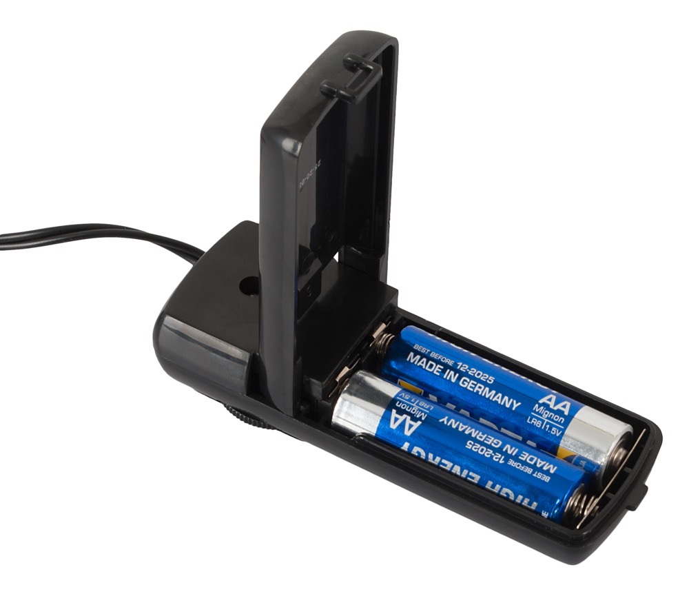 9,1 cm lang, 5,7 cm breit. PVC, ABS. Bitte Batterien extra bestellen: 2 x AA.