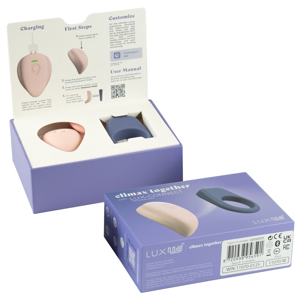 Luxus von Kiiroo ist ein 2-teiliges, magnetisches Hightech-Paartoy-Set, das beim Sex perfekt auf die Nähe und Bewegung beider Partner reagiert. Es besteht aus dem tragbaren Klitoris-Vibrator LuxHer und dem Penisring LuxHim. Kommen die beiden Toys näher zusammen, aktiviert LuxHim die Vibrationen von LuxHer – und je schneller sich LuxHim bewegt, desto intensiver werden die Vibrationen. So entsteht LuxConnect, ein perfekt synchronisiertes, intensives Erlebnis! Dabei liegt der Fokus auf der Stimulation der Klitoris, sodass der Orgasmus leichter erreicht werden kann, während der anschmiegsame Penisring seine Erektion unterstützt. Für gemeinsame intensive Höhepunkte!
