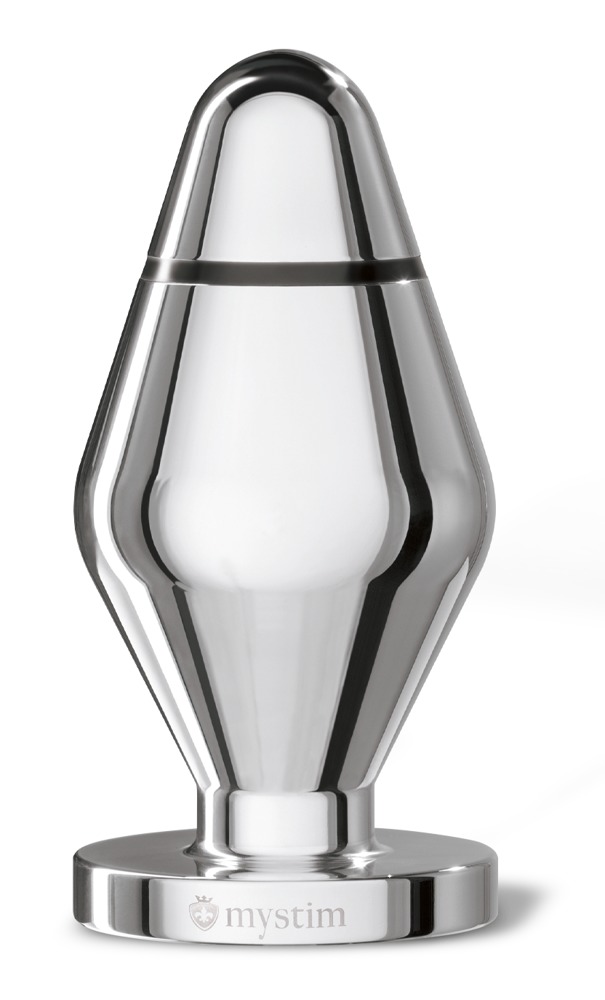 Butt Plug Little John von Mystim für Reizstromgerät Tension Lover oder Pure Vibes von Mystim. Der E-Stim-Plug ist mit seinem Durchmesser von 5 cm ein ideales Analtoy. Das glatte Metall verjüngt sich, so dass der Butt Plug leicht eingeführt werden kann. Bereits nach wenigen Zentimetern erfolgt die Isolierung zwischen den beiden Polen, und die elektrische Stimulation ist schon sehr früh spürbar. Man kann dieses prickelnde, lustvolle Vergnügen entweder über Stunden genießen, oder die Stimulation variieren und intensivieren, so dass man schnell zu sensationellen Höhepunkten getrieben wird. Der Metall-Plug kann vor dem Gebrauch auf der Heizung erwärmt oder im Kühlschrank gekühlt werden.