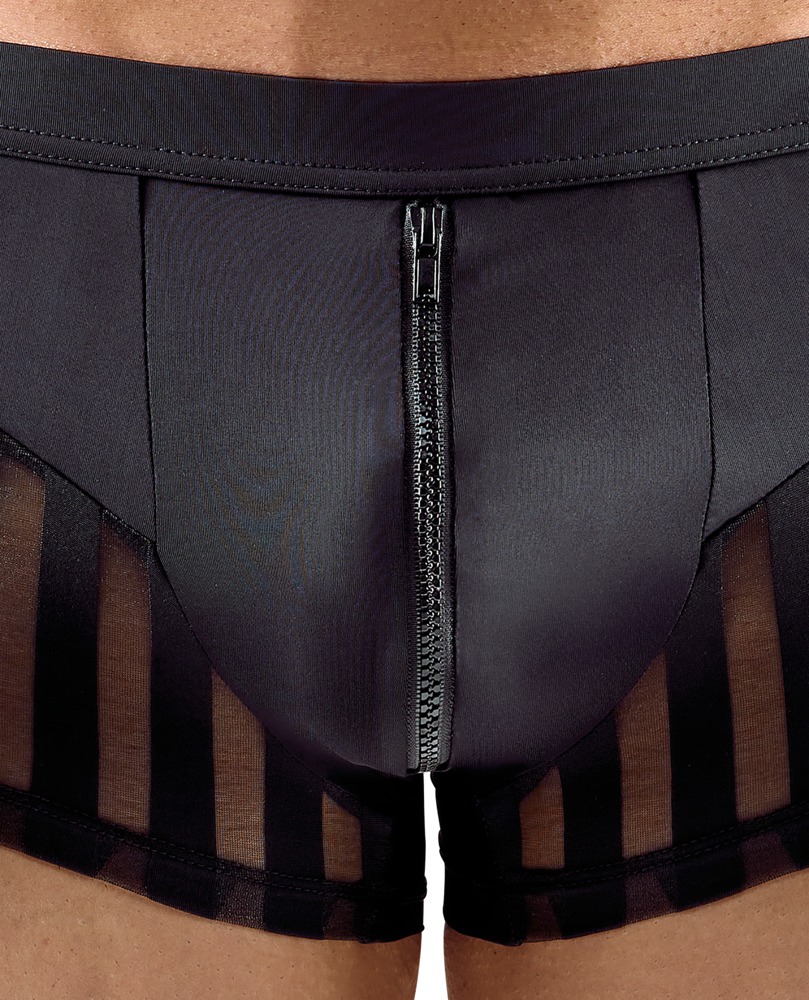 Betonende Pants von Svenjoyment aus weicher schwarzer Mikrofaser mit transparenten Streifen-Einsätzen jeweils vorne seitlich. Mit unterlegtem Front-Reißverschluss. Rundum elastisch für maximalen Tragekomfort.