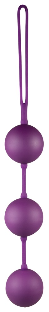 Violettfarbenes Liebeskugel-Trio mit schwingendem Vibroball-Innenleben und Rückholschlaufe. Geeignet für fortgeschrittenes Training der Beckenbodenmuskulatur.